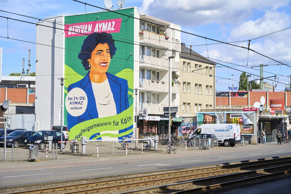 Kunst trifft Politik: Ein monumentales Graffiti prägt seit dieser Woche das Stadtbild von Ehrenfeld: das Porträt der GRÜNEN Oberbürgermeisterkandidatin Berîvan Aymaz samt Wahlaufruf. Die zentrale Hauswand im Ehrenfeldgürtel in der Nähe der Venloer Straße wird damit zum sichtbaren Zeichen dafür, dass Kunst und Politik bei den GRÜNEN zusammenwirken, um Köln lebendig, offen und demokratisch zu gestalten.